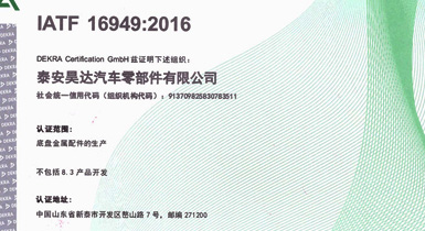 泰安昊達汽車零部件有限公司位于新泰市經濟開發(fā)區(qū)嶅山路7號,公司成立于2011年,是一家生產中、重型卡車底盤鑄鍛件、焊接件、發(fā)動機配件的專業(yè)廠家,廠區(qū)占地面積101畝,2018年建設年產300萬件汽車零部件項目,項目總投資3.16億元,總建筑面積3.6萬平方米,是新泰市汽車裝配產業(yè)鏈的重點項目、2018年、2019年泰安重點項目,現(xiàn)已建設完畢,于2019年1月1日正式投入使用,設備新上覆膜砂自動化鑄造生產線1條、熱模鍛生產線6條、自動化焊接生產線10條、CNC加工設備200余臺套。 主要產品:中、重卡車底盤配件、轉向配件、中后橋氣室支架總成、中后橋配件、前橋轉向節(jié)臂、焊接配件、發(fā)動機配件。產品主要銷往中國重汽集團、市場份額約50%,位居行業(yè)鑄件產品前三。 公司擁有IATF16949:2016國際標準質量管理體系認證,擁有實 ......